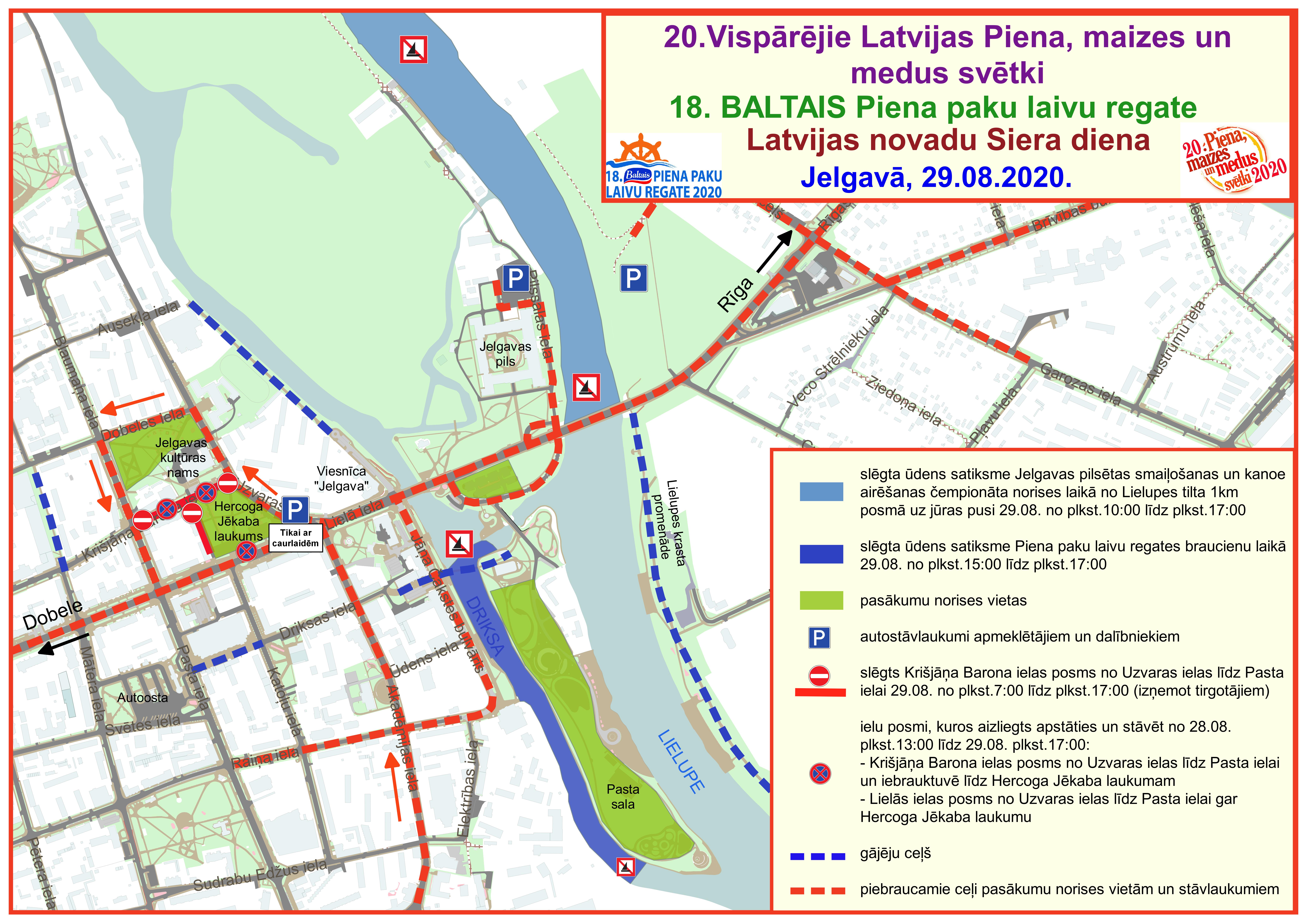 2020. gada 29. augustā notiks 20. Vispārējie Piena, Maizes un Medus svētki, 18. BALTAIS Piena paku laivu regate, Latvijas novadu Siera diena un 30. augustā Latvijas atklātā čempionāta ūdens motosportā 6. posms. Satiksme tiks organizēta saskaņā ar pievienotajām shēmām.
