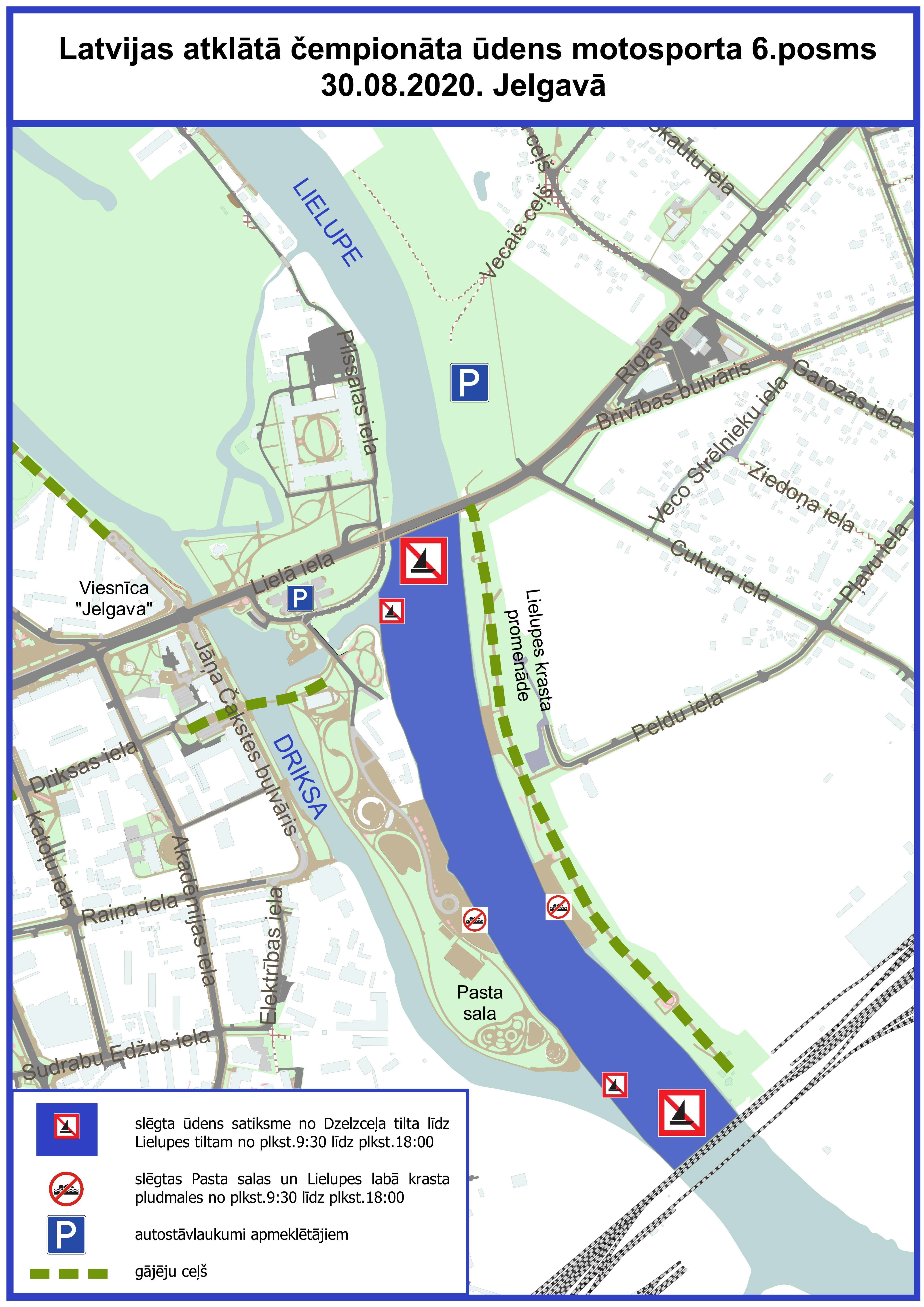 Latvijas atklātā čempionāta ūdens motosportā 6. posms pasākuma laikā apmeklētājiem tiks nodrošinātas autostāvvietas: