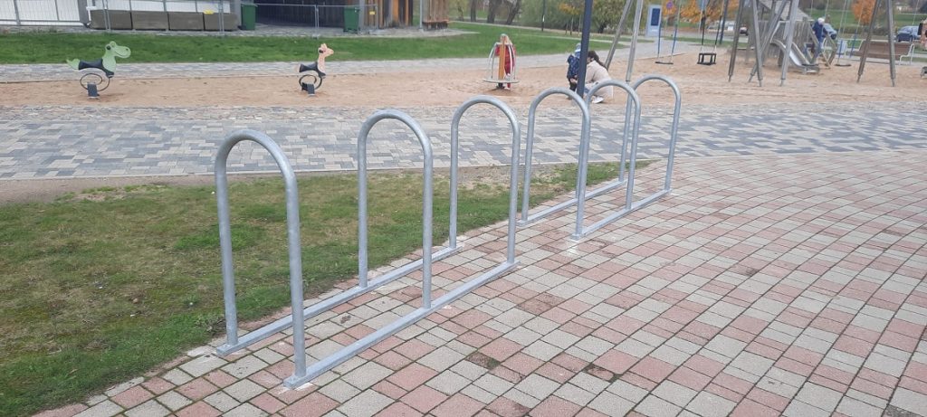 Pasta salā pie bērnu rotaļu laukuma uzstādīti veloturētāji