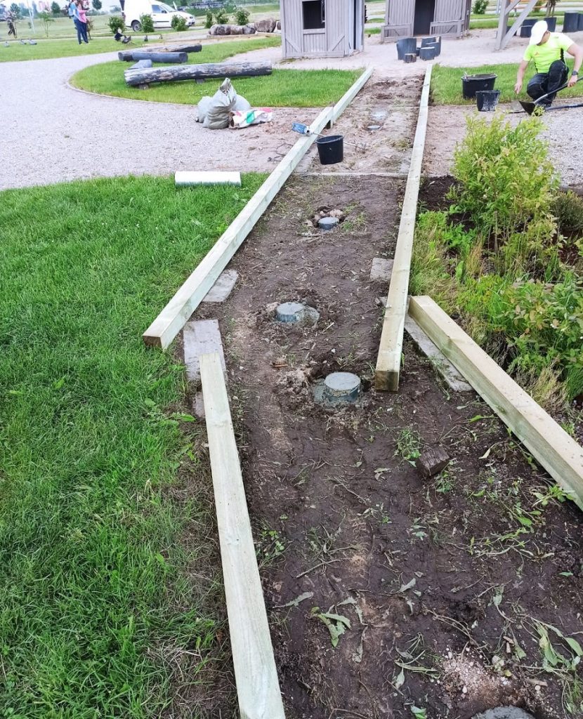 Uzsākti darbi divu pastaigu laipu uzstādīšanai Pasta salas izzinošajā vides laukumā bērniem. Iepriekš uzstādītās laipas bija novecojušas un bojātas, tādēļ nolemts tās nomainīt pret jaunām – koksnes kompozīta dēļu laipām, kas ir izturīgas pret mitrumu un dažādu vides faktoru ietekmi. Pastaigu laipu platums ir 1,5 metrs un garums vienai laipai – 11,13 metri, otrai – 23,23 metri. Pašlaik ir iebetonēti pamati un izvietotas koka lāgas, pie kurām stiprinās dēļus.