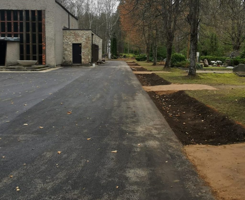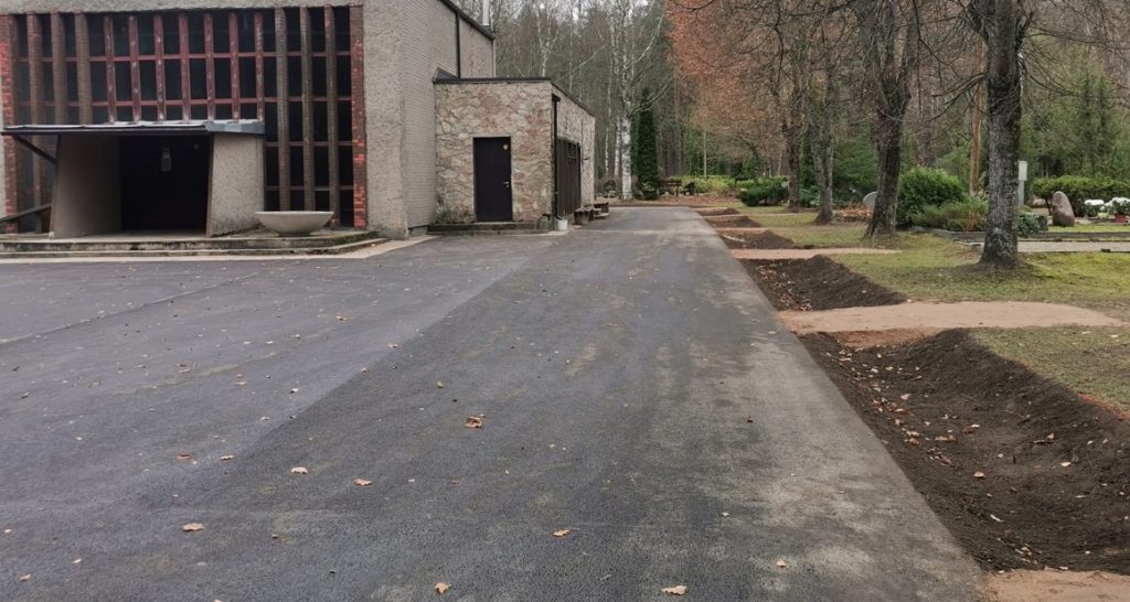 Pie Baložu kapsētas kapličas sakārtota lietus ūdens novade un laukums