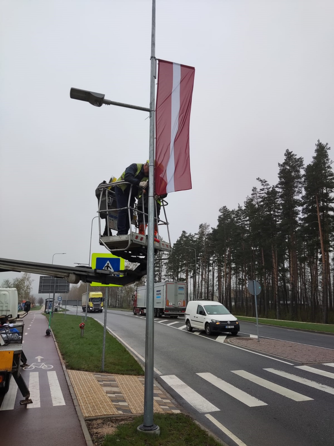 Šonedēļ pilsētvidē sākta Lieldienu dekoru noņemšana, lai jau drīzumā Jelgava rotātos 4. maija svētku noskaņā. Par godu Latvijas Republikas neatkarības atjaunošanai pilsētvidē līdz nedēļas beigām tiks izvietoti dekori Latvijas Valsts karoga un tautisko rakstu tematikā. Valsts karogi statīvos tiks uzstādīti rotācijas aplī Stacijas ielā pie Lāčplēša pieminekļa. Dekoru “Asni”, kas pārkrāsots Valsts karoga tematikā, uzstādīs Hercoga Jēkaba laukumā. Šodien sākta apgaismojuma balstu dekoru izvietošana Valsts un Jelgavas pilsētas karogu tematikā. Dekori pamīšus tiek izvietoti apgaismes balstos Lielajā ielā un Loka maģistrālē.