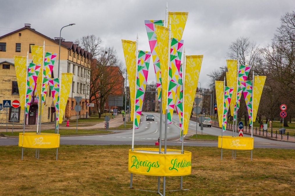 Šogad Lieldienu dekoros izmantota jauna stilistika un pilsētvidē izvietoti dekori vienotā noskaņā, informē pašvaldības iestādē “Pilsētsaimniecība”. Tā Hercoga Jēkaba laukumu rotā deviņas dažāda izmēra krāsainas olas, Lieldienu zaķis un lielformāta fotorāmis ar Jelgavas pilsētas siluetu un logo. Driksas ielā līdztekus lielformāta fotorāmim pilsētniekus priecē lampiņu virtenes un krāsu vimpeļi. Pērnavas ielā, Loka maģistrālē, Pasta ielas satiksmes kustības rotācijas aplī un Vecpilsētas ielā izvietoti jauni statīvi ar daudzkrāsainiem karogiem, bet Pasta salā pavasara saulē iemirdzas sešas lielas un septiņas mazākas Lieldienu olas. Dobeles šosejas pļavā pie Mīlestības alejas, Satiksmes ielā, Lietuvas šosejas krustojumā ar Miera ielu un Kalnciema ceļa krustojumā ar Veco ceļu svētku akcentus ienes kopumā 15 krāsainas olas, un katrā no šīm četrām vietām izvietots arī jauns dekors – alumīnija “ligzda” ar krāsainu vitrāžu.