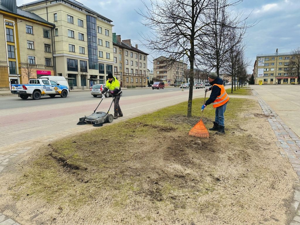 Pilsētas parkos un skvēros tiek savākti lūzušie koku zari un lapas. Iestājoties siltākam laikam, uzkopšanas darbiem uz ietvēm un ielu malu kopšanai pievienosies arī tehnika.