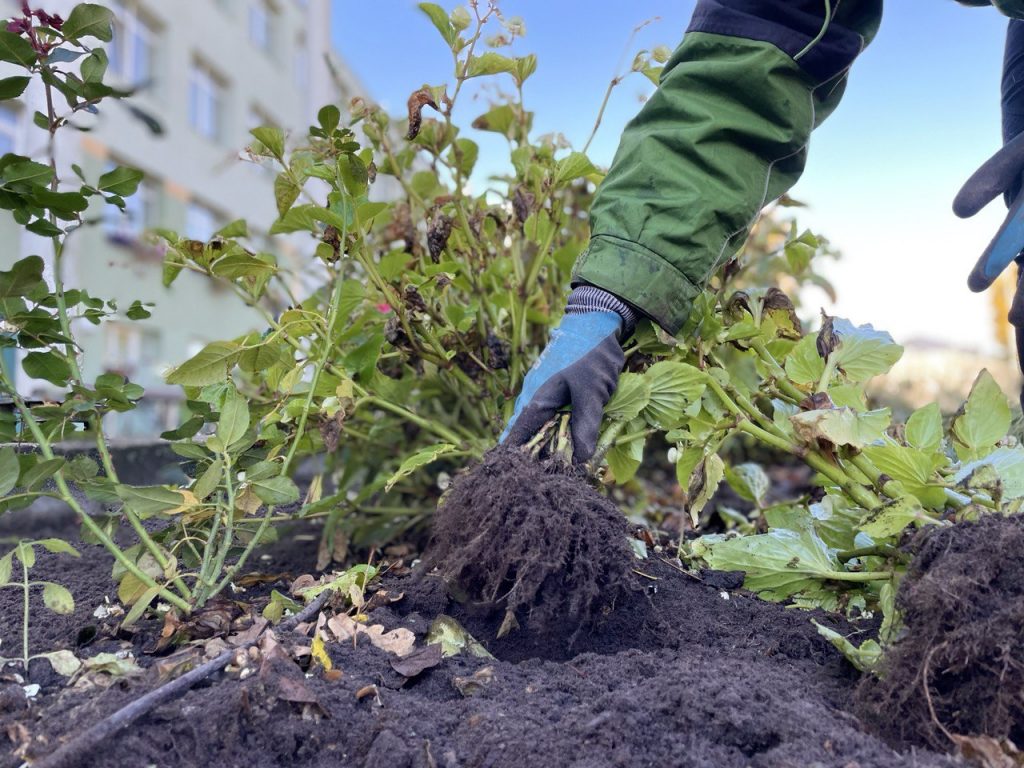 No apstādījumiem tiek izņemtas viengadīgās vasaras puķes. Puķu dobēs tiek saglabātas atsevišķas graudzāles, jo tās labi pacieš salu un turpina izgreznot pilsētu. Pārziemojušās graudzāles tiks apgrieztas pavasarī. Ziemcietes tiek ieziemotas, nogriežot un apsedzot ar skuju zariem.