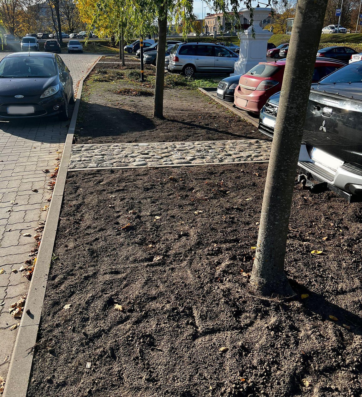 Pilssalas ielas stāvlaukumā pie Baltās vāzes šonedēļ tiks pārveidota dobe. No dobes izņemti iepriekš augošie krūmi un ziemcietes, izveidojot divas dekoratīvas akmens bruģa zonas, papildinot ar melnzemi un mulču.