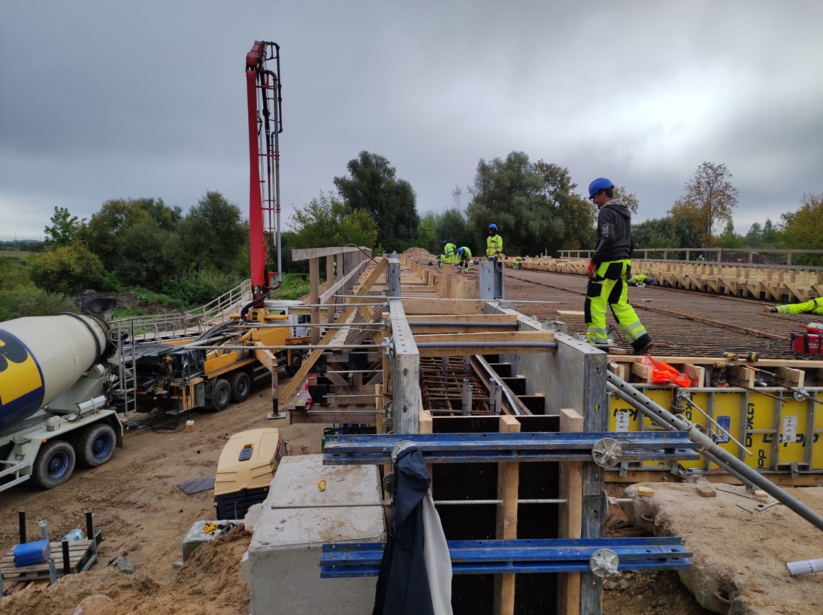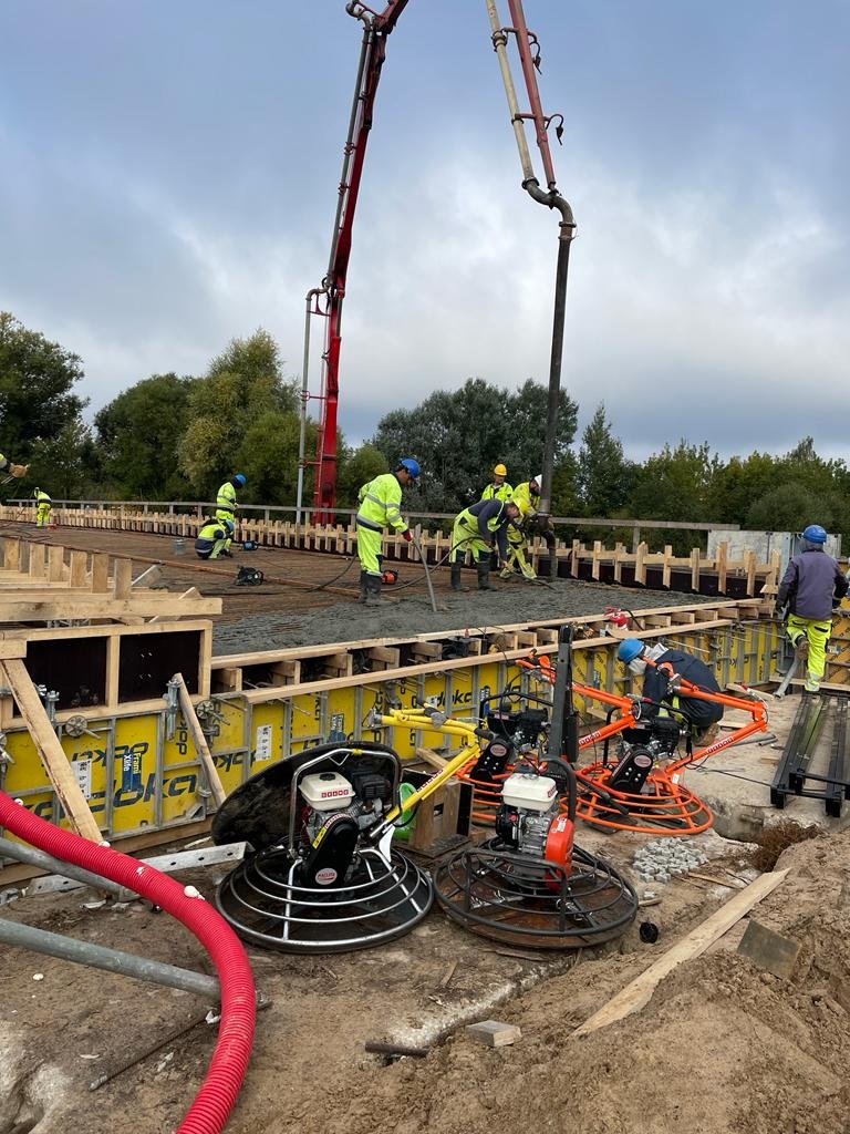 Platones upes tiltam Bauskas ielā veic laiduma betonēšanas darbus