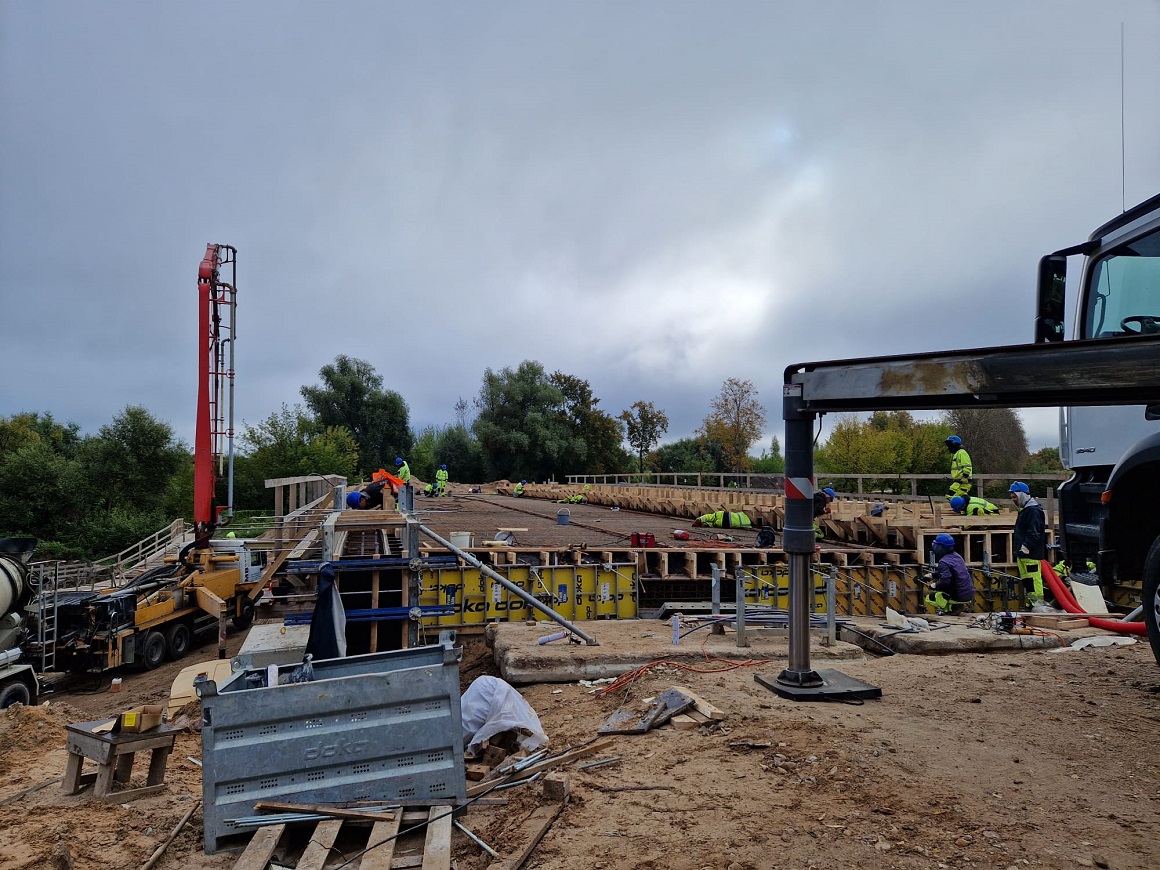 Turpinās tilta pār Platones upi Bauskas ielā izbūves darbi. Šodien uzsākta tilta laidumu betonēšana. Vienlaicīgi tiek veikti tilta pievadu konstrukciju izbūves darbi un apvienotās gājēju-velosipēdu ietves betona apmaļu uzstādīšana.