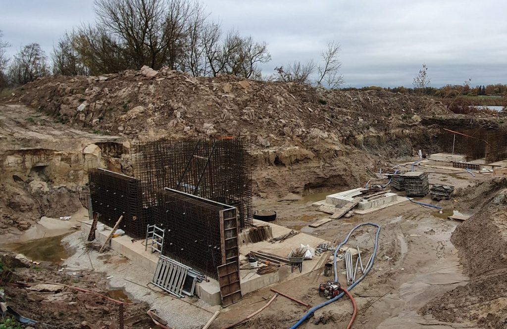 - veikta pagaidu dambja izveide, betona konstrukciju demontāža un grunts rakšanas darbi;