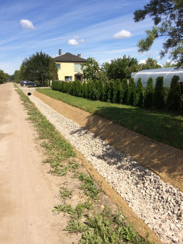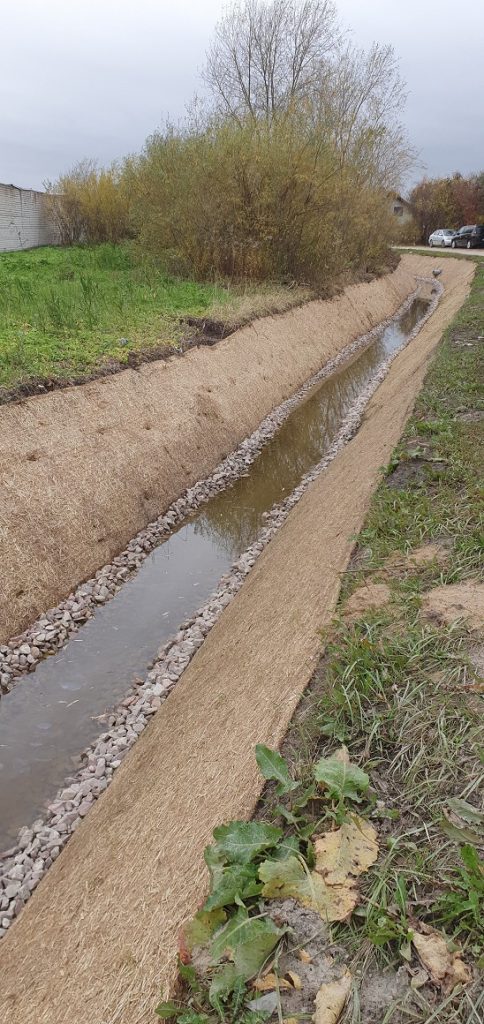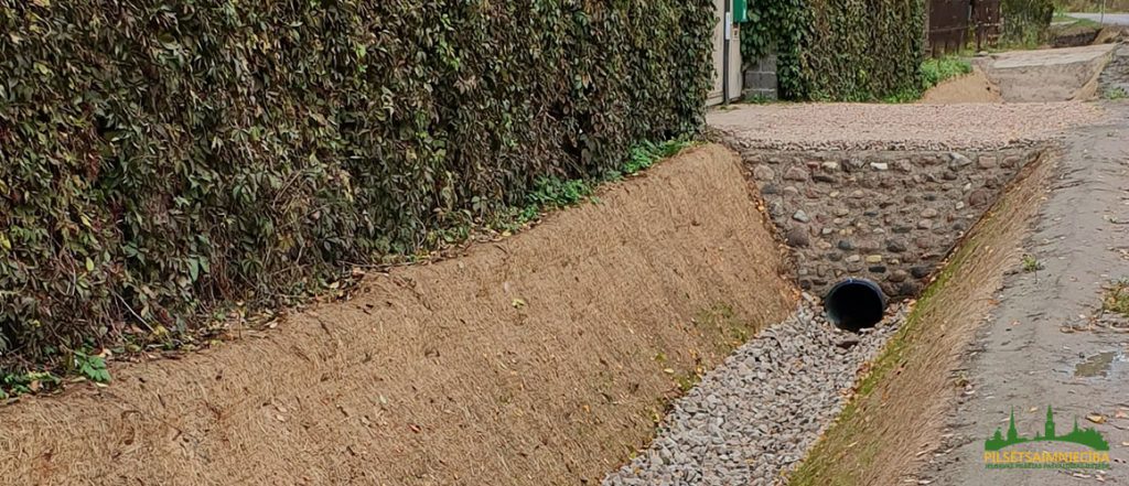 - grāvju nogāžu stiprināšanas darbi Slokas ielas, Meiju ceļa un 1.līnijas teritorijā;