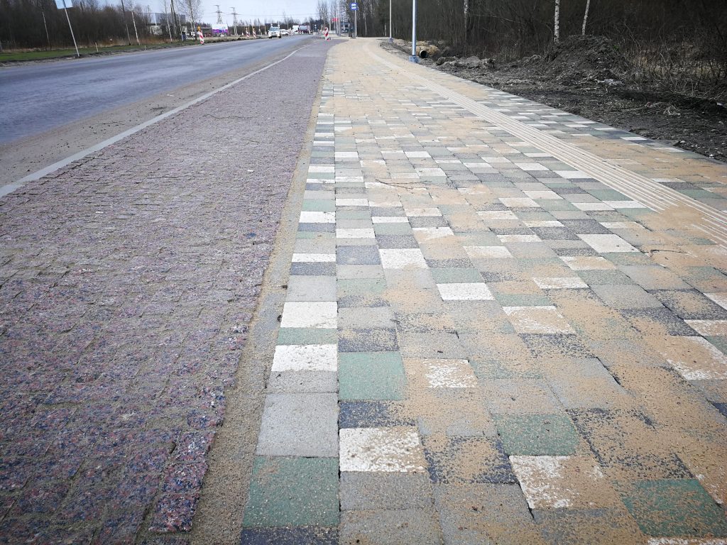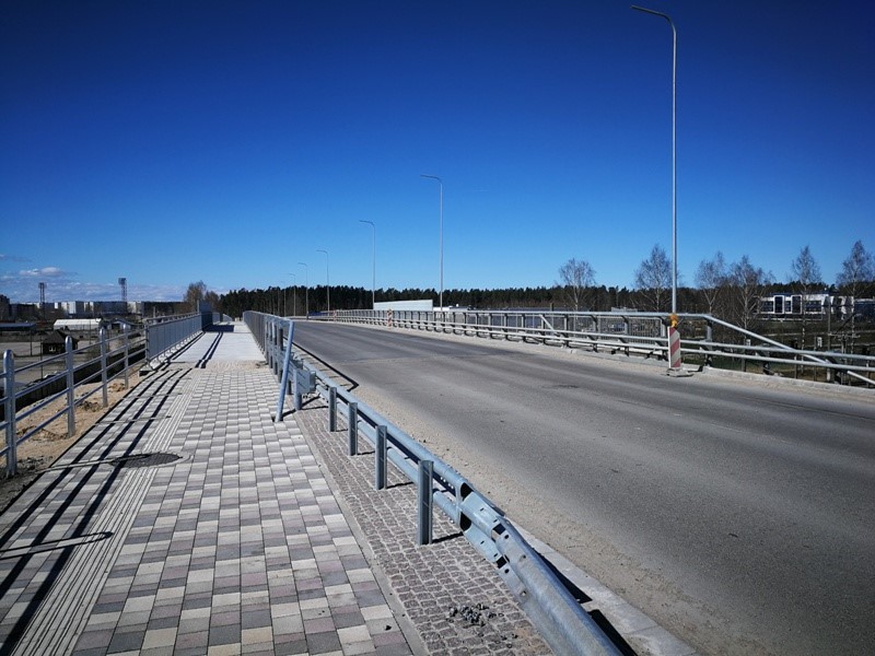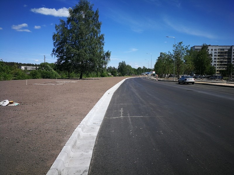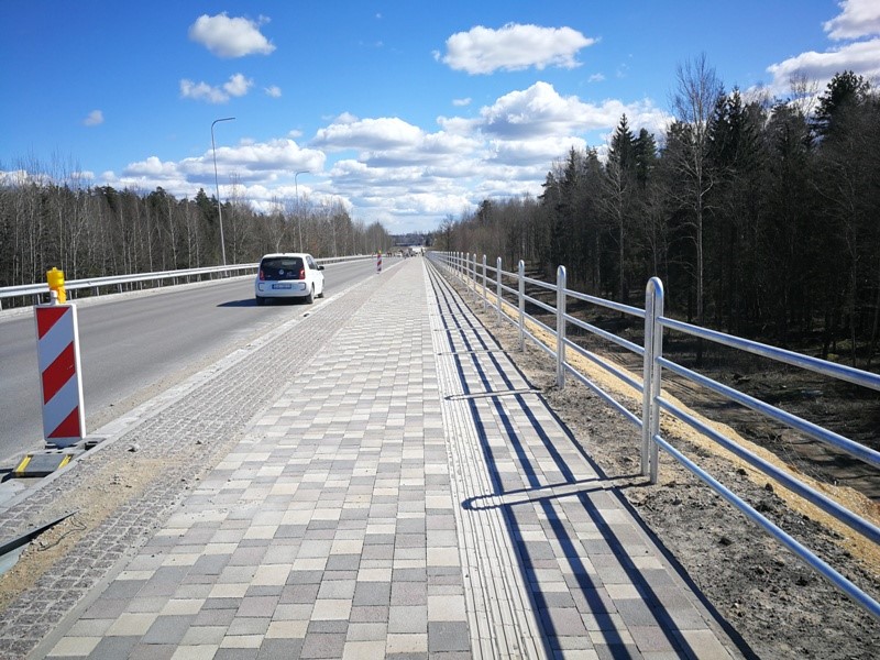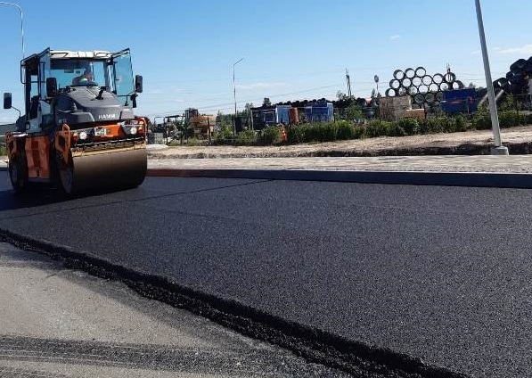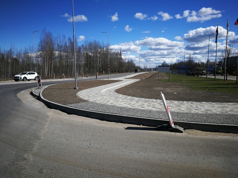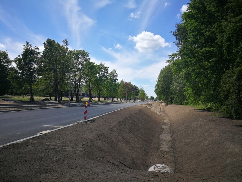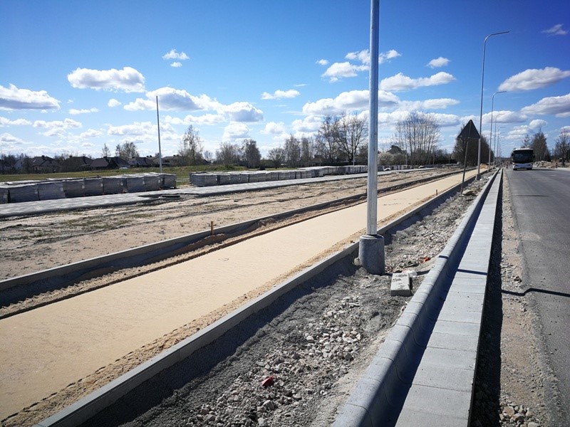 Turpinās brauktuves, ietvju un veloceliņa izbūves darbi, ietvju bruģēšana, izbūvētas rotācijas apļa saliņas, visā posmā ir ieklāts asfaltbetona segums, pārcelts NP biznesa parks reklāmas stends.