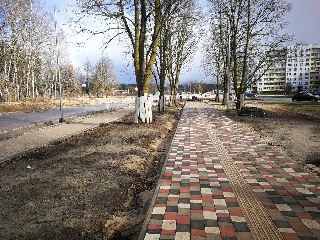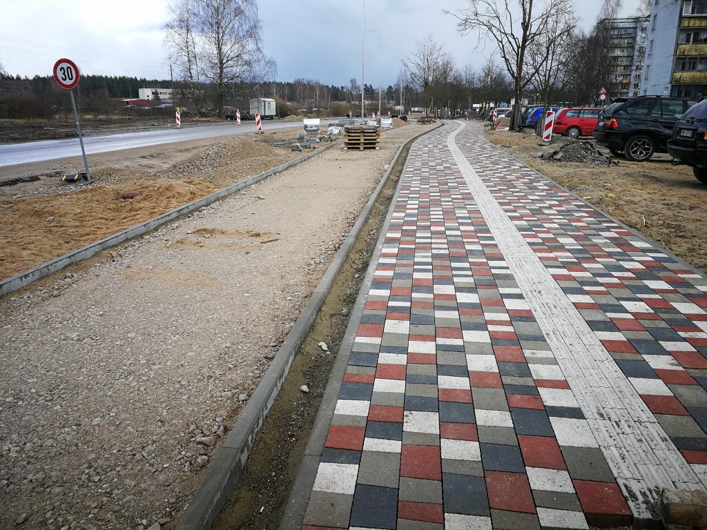 Turpinās ietvju izbūves darbi, izbūvēti apgaismojuma tīkli, gāzes vada izolācijas atjaunošana, apgaismojuma izbūve. Uzsākta stāvlaukuma izbūve pie Vecā ceļa – šķembu kārtas izbūve, apmaļu uzstādīšana, bruģēšana, turpinās darbi stāvlaukumos pie daudzdzīvokļu ēkām, kā arī 3.kārtā uzsākti labiekārtošanas darbi, visā posmā ir ieklāts asfaltbetona segums.