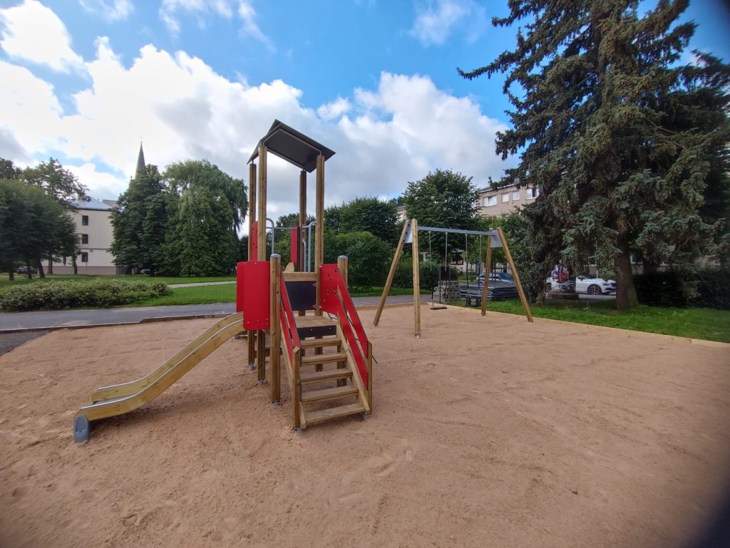 Rotaļu laukumā Katoļu ielā 7B, iepretim tirdzniecības namam “Kanclers”, uzstādītas jaunas un daudzveidīgas rotaļu iekārtas.
