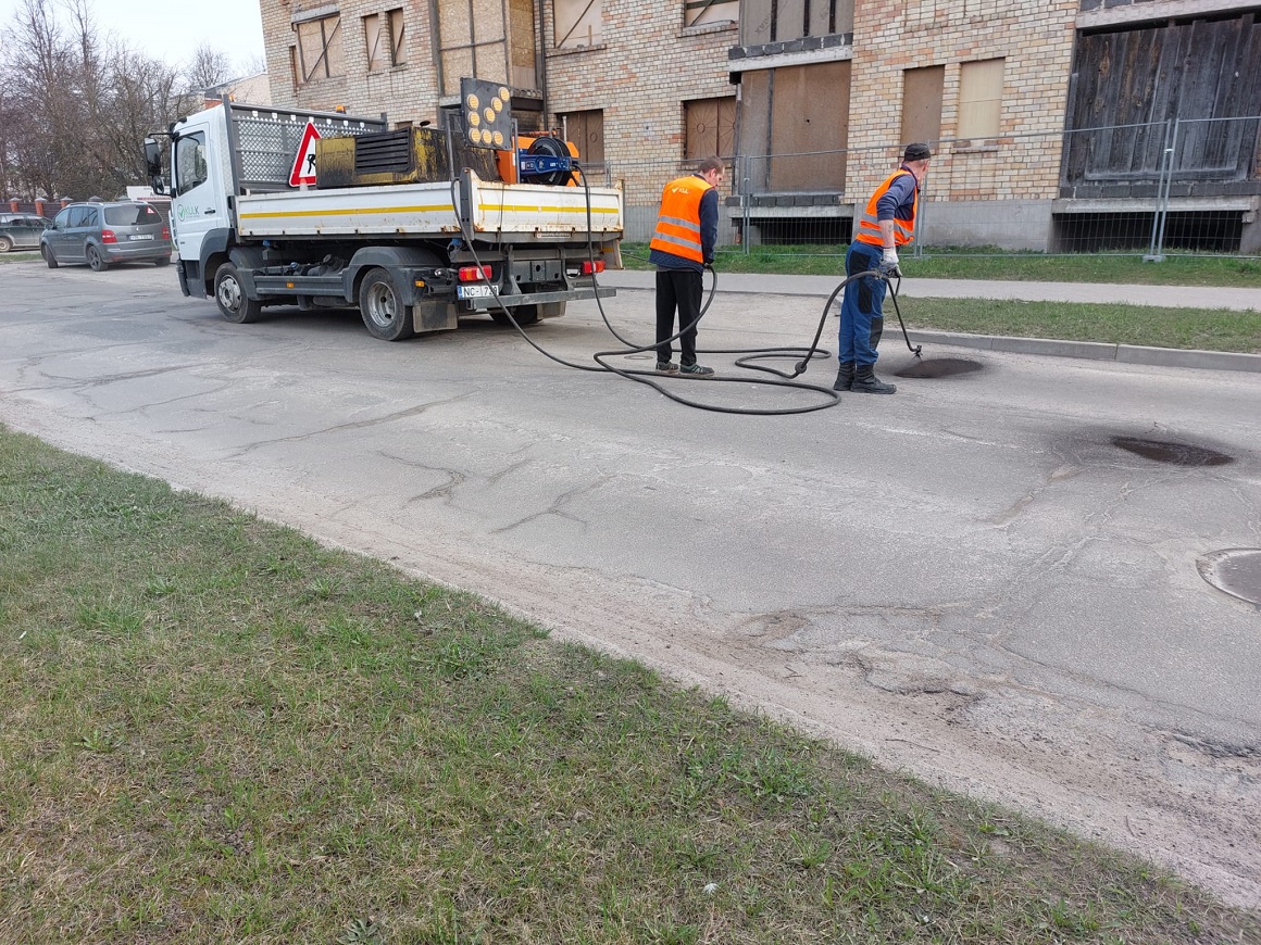 Sāk plānveida asfaltbetona bedrīšu remontu ar karsto asfaltu