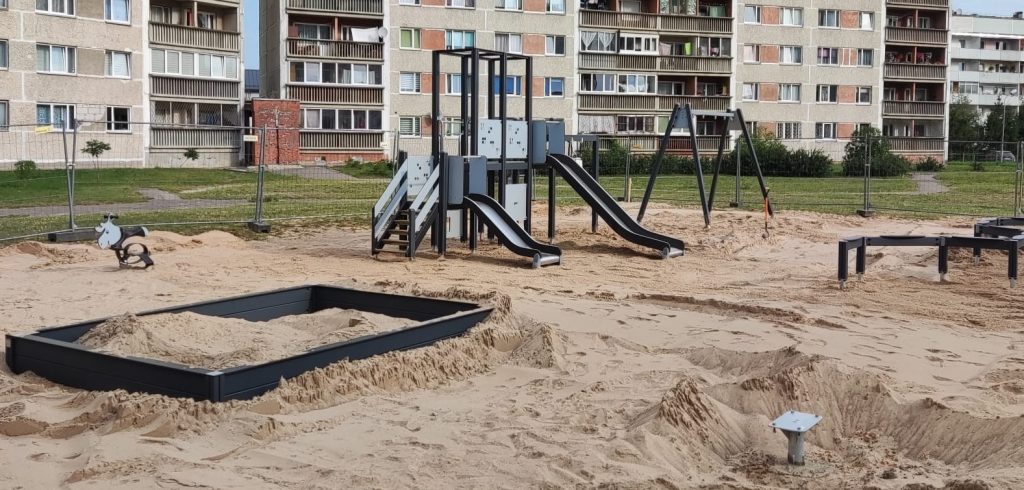 Satiksmes ielas 33 pagalmā uzstādītas jaunas rotaļu iekārtas