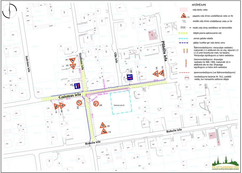 No 10. augusta līdz 20. augustam ierobežota satiksme Gaismas ielā, posmā no Stadiona ielas līdz Bērzu ceļam būvdarbu laikā – sadales gāzesvadu izbūve Gaismas ielā, ievērojot saskaņoto Satiksmes organizācijas shēmu.
