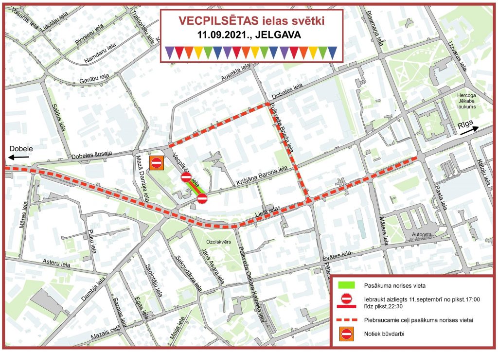 11. septembrī Jelgavas vecpilsētā notiks tradicionālie Vecpilsētas ielas svētki. No plkst. 17:00 līdz 22:30 slēgta transporta kustība Vecpilsētas ielas posmā no Krišjāņa Barona ielas. Autovadītājiem lūgums ievērot saskaņoto satiksmes organizācijas shēmu un izvietotās ceļa zīmes.