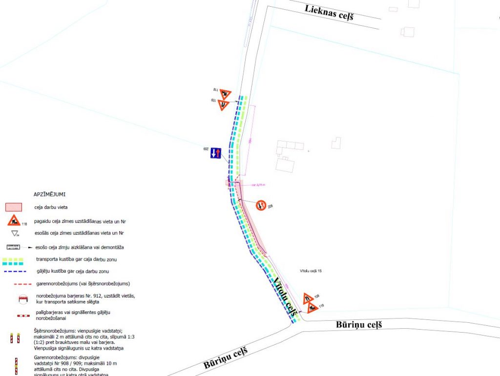No 12. marta līdz 31. martam ierobežota satiksme Vītolu ceļā, posmā no Būriņu ceļa līdz Miezītes ceļam, būvdarbu laikā – tranšejas rakšana un kabeļa izbūve, ievērojot saskaņoto Satiksmes organizācijas shēmu.