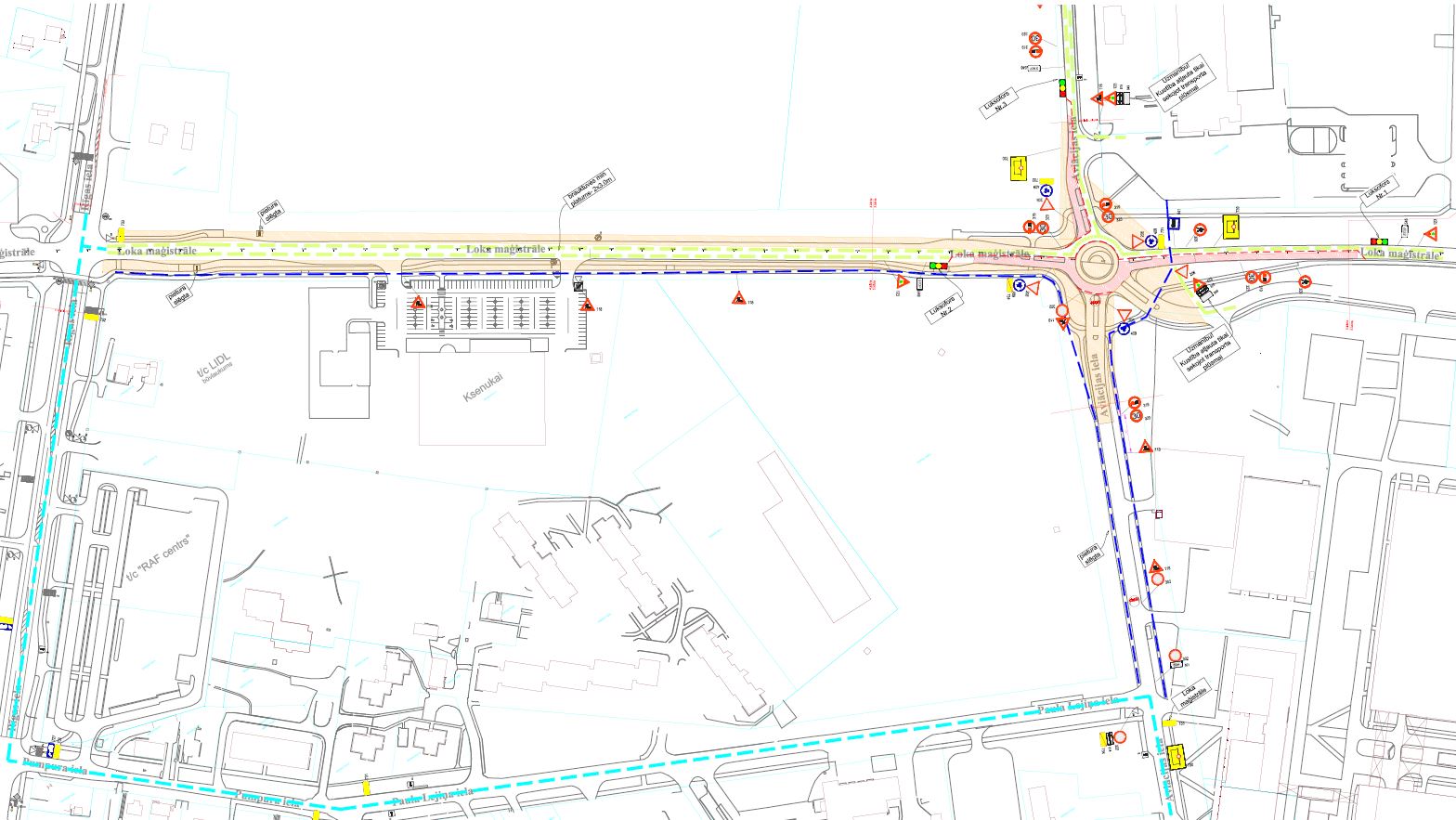 Plānots, ka no 18. jūnija līdz 22. jūnijam Loka maģistrāles un Aviācijas ielas krustojumā tiks veikti asfaltbetona seguma uzklāšanas darbi.