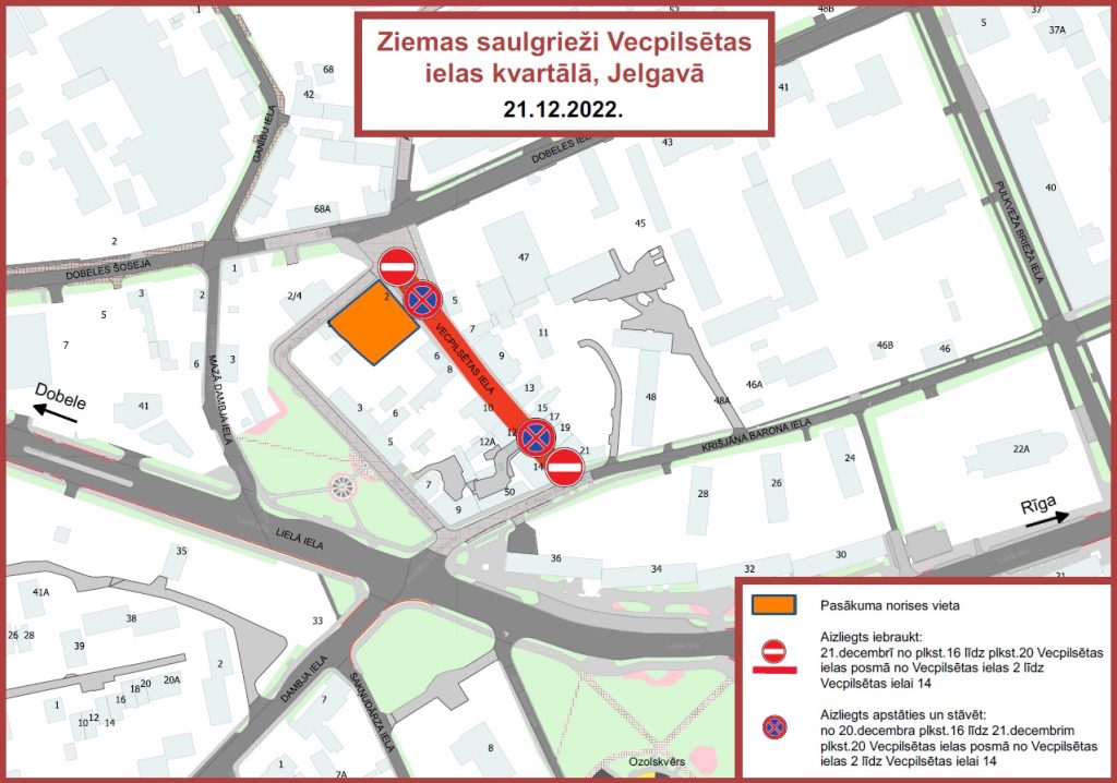 Trešdien, 21. decembrī, Vecpilsētā notiks Ziemas saulgriežu sagaidīšanas pasākums, kura laikā tiks slēgta satiksme Vecpilsētas ielas posmā no Nr. 2 līdz Nr. 14.