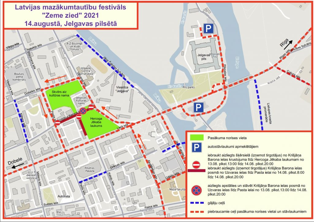 - 14.augustā plkst.8:00 līdz plkst.20:00 aizliegts iebraukt (izņemot tirgotājus) Krišjāņa Barona ielas posmā no Uzvaras ielas līdz Pasta ielai;