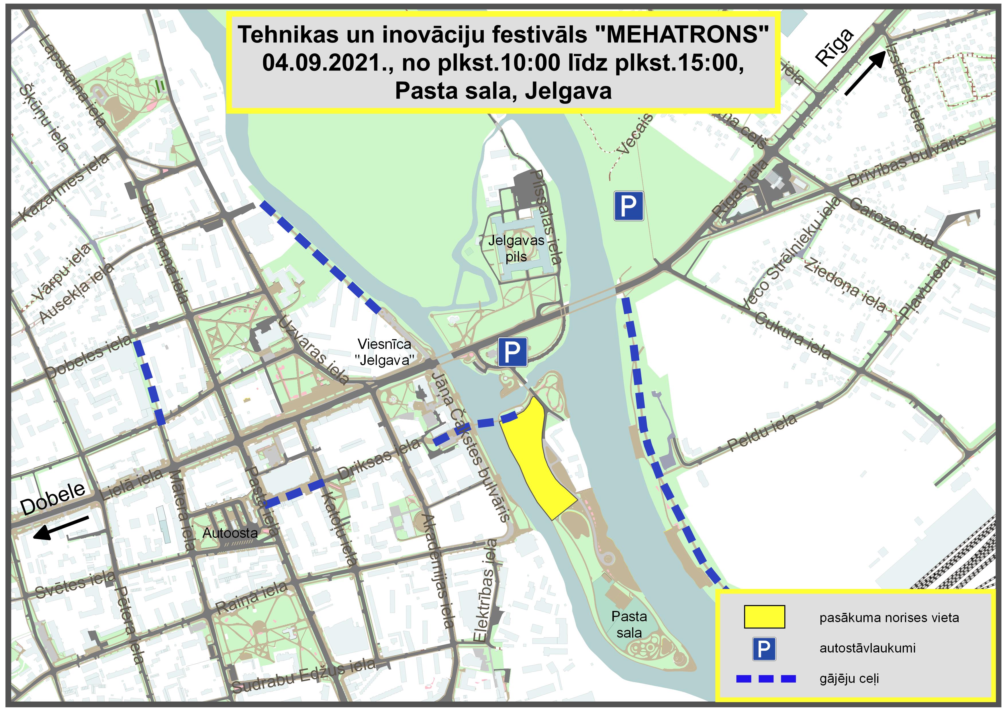 2021. gada 4. septembrī no plkst. 10:00 līdz plkst. 15:00 Pasta salā notiks Tehnikas un inovāciju festivāls “Mehatrons”. Satiksme organizēta saskaņā ar pievienoto shēmu.