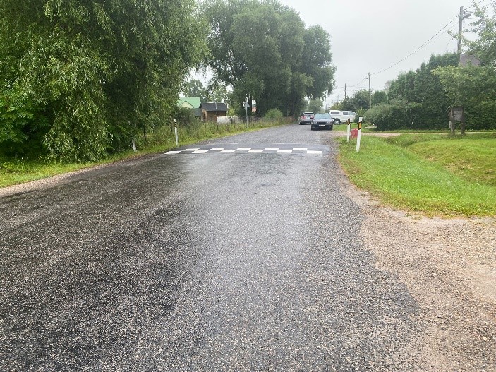 Ātrumvaļņu aprīkošana ar ceļa zīmēm veikta pamatojoties uz LVS 99:2010 “Ceļa ātrumvaļņi” noteiktajām prasībām, risinājums saskaņots ar VSIA “Latvijas Valsts ceļi”.
