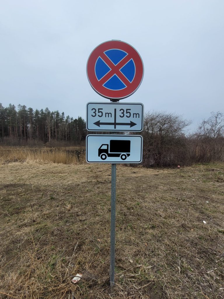 Neskatoties uz to, bieži stāvlaukumā konstatēti pārkāpumi – stāvvietas izmanto smagie kravas transportlīdzekļi, turklāt šoferi nereti piesārņo apkārtējo vidi, atstājot stāvlaukumos sadzīves atkritumus. Jāuzsver, ka šie stāvlaukumi nav pielāgoti smagajam autotransportam un neatbilst servisa prasībām. 2025. gada martā Satiksmes kustības drošības komisijas sēdē pieņemts lēmums esošās ceļa zīmes aizstāt ar ceļa zīmēm Nr. 326 “Apstāties aizliegts”, papildinot tās ar papildzīmi Nr. 818 “Transportlīdzekļa veids”. Jaunās zīmes attiecas uz kravas automobiļiem (arī ar piekabēm un puspiekabēm), kuru pilna masa pārsniedz 3,5 tonnas.
