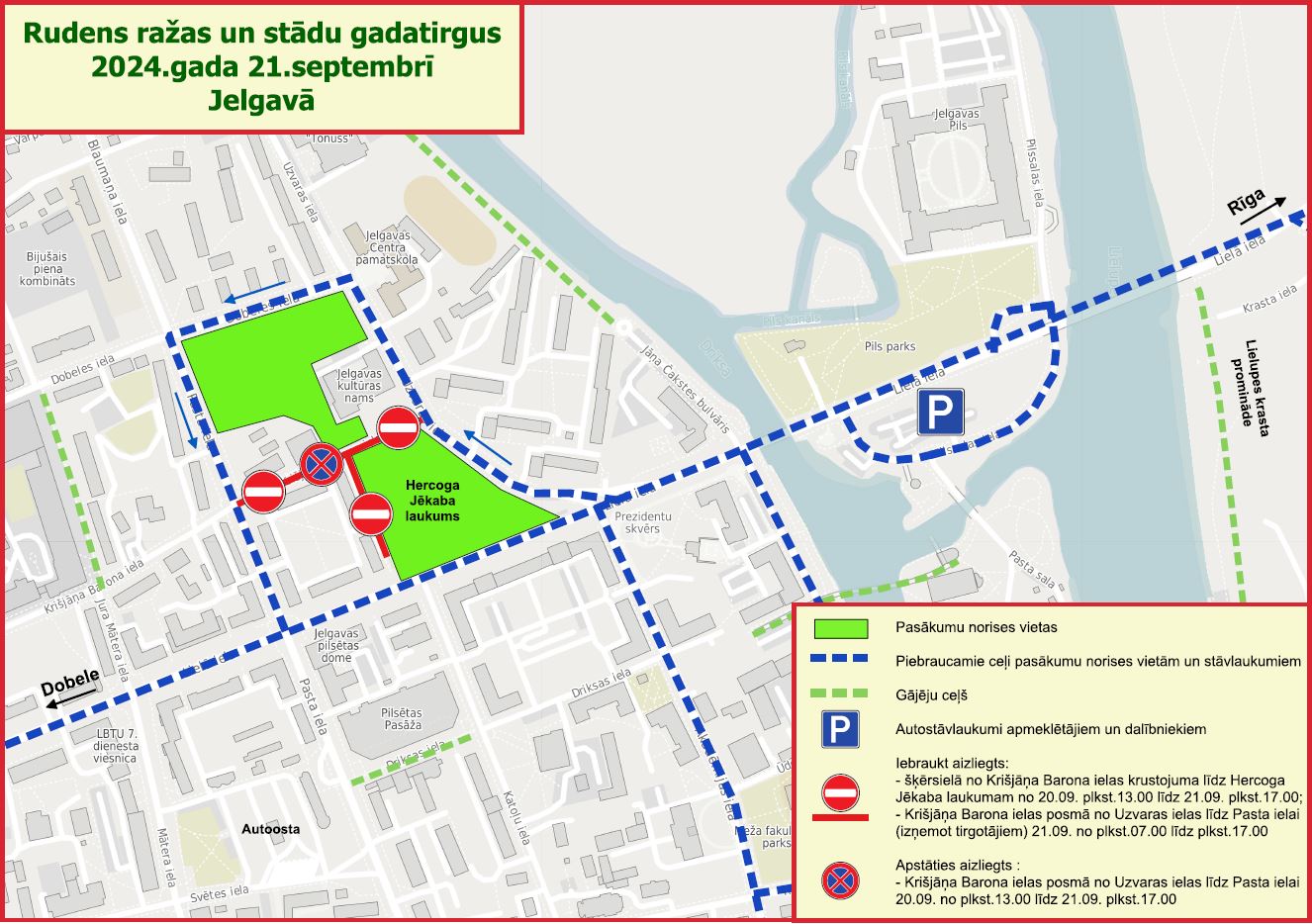 No 20. septembra pulksten 13 līdz 21. septembra pulksten 17 būs aizliegts apstāties un stāvēt Krišjāņa Barona ielas posmā no Uzvaras ielas līdz Pasta ielai un aizliegts iebraukt šķērsielā no Krišjāņa Barona ielas krustojuma līdz Hercoga Jēkaba laukumam. Bet 21. septembrī no pulksten 7 līdz 17 iebraukt aizliegts Krišjāņa Barona ielas posmā no Uzvaras ielas līdz Pasta ielai.