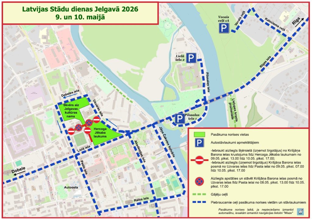 Satiksmes organizācijas shēma “Stādu dienām 2026” 9. un 10. maijā