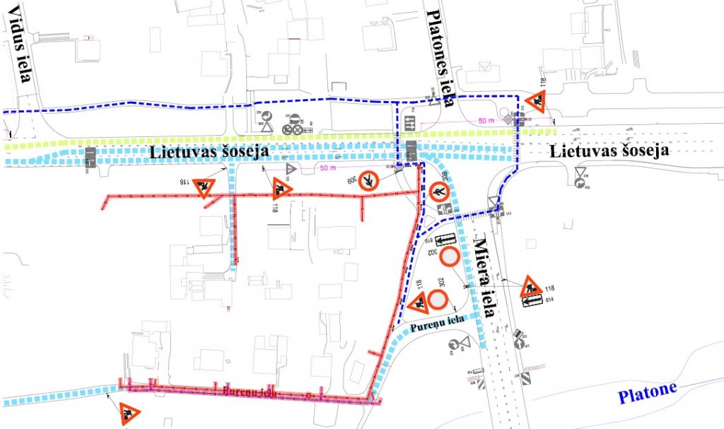 No 20. jūlija līdz 31. oktobrim ierobežota satiksme Lietuvas šosejā, posmā no Miera ielas līdz Vidus ielai, Lietuvas šosejā, posmā no Vidus ielas līdz Viskaļu ielai.