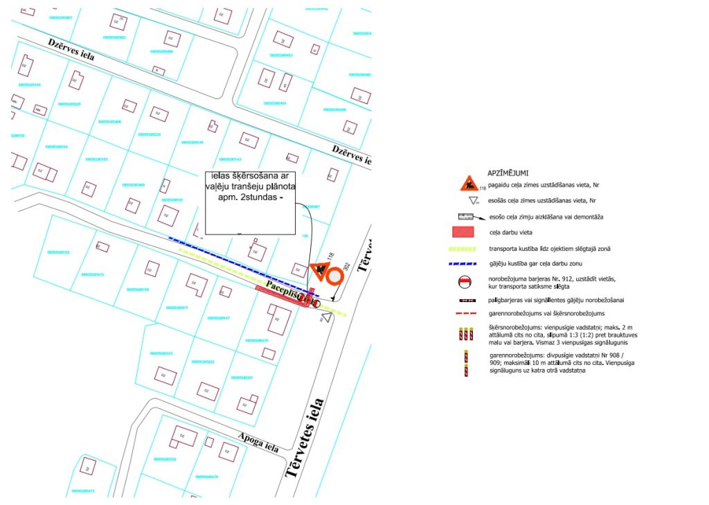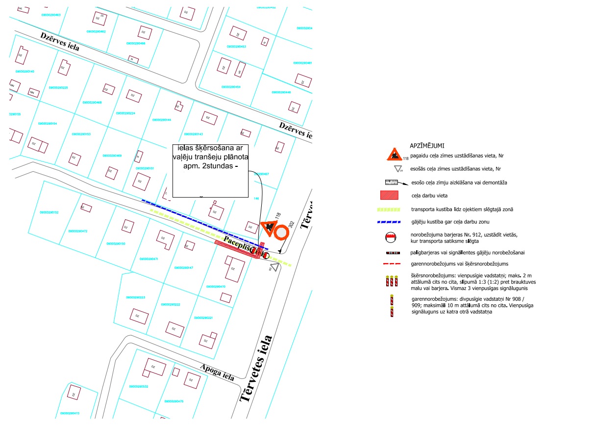 No 6. jūnija plkst. 09.00 līdz 6. jūnijam plkst. 17.00 slēgta satiksme Paceplīšu ielā, būvdarbu laikā – tranšejas rakšana, kabeļa guldīšana, ievērojot saskaņoto Satiksmes organizācijas shēmu.