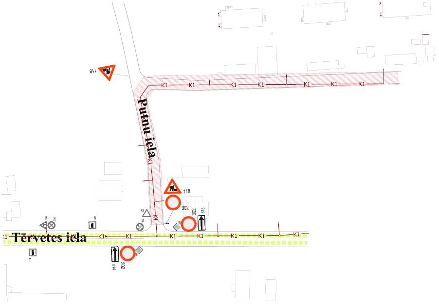 Līdz 10. oktobrim slēgta satiksme Putnu ielā, posmā no Tērvetes ielas Nr. 116 līdz Tērvetes ielai Nr. 106, būvdarbu laikā – ūdens un kanalizācijas tīklu ierīkošana, ievērojot saskaņoto Satiksmes organizācijas shēmu.