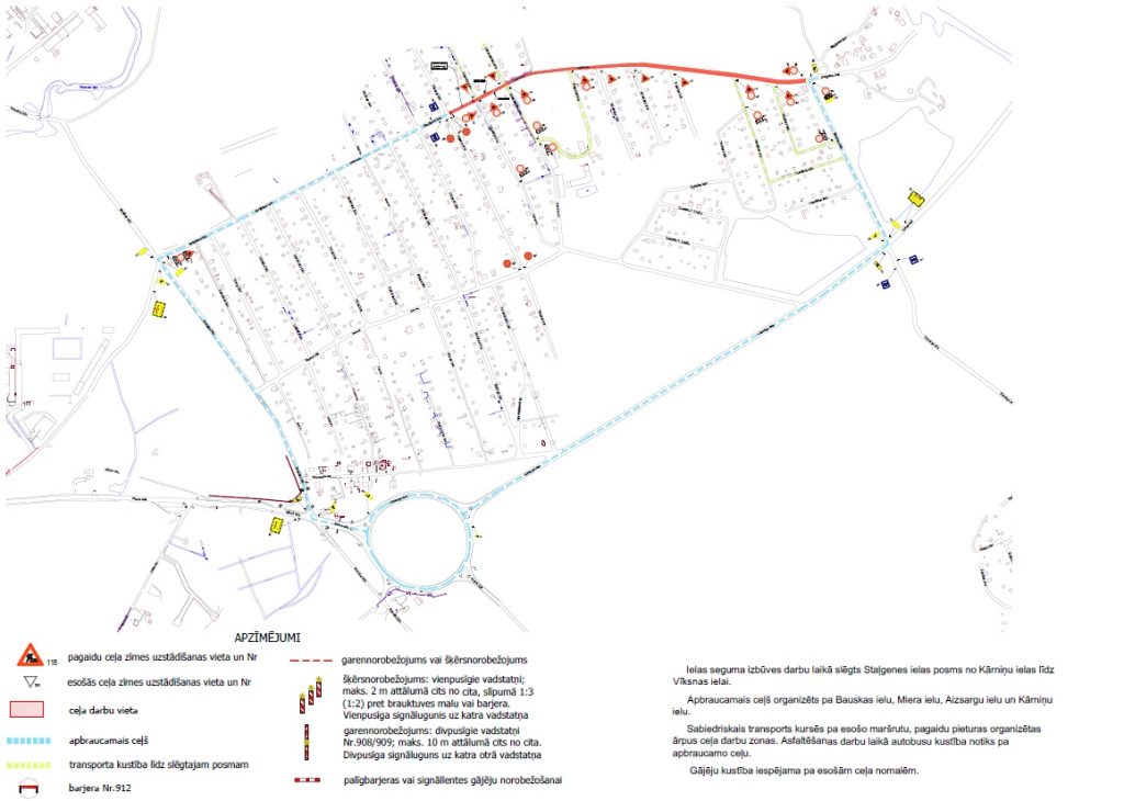Gājēju kustība iespējama pa esošajām ceļa nomalēm. Iedzīvotāji aicināti būt uzmanīgi atrodoties būvdarbu zonas tuvumā.