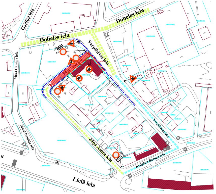 Slēgta satiksme un ierobežota gājēju kustība Jāņa Asara ielā un ierobežota satiksme un gājēju kustība Vecpilsētas ielā