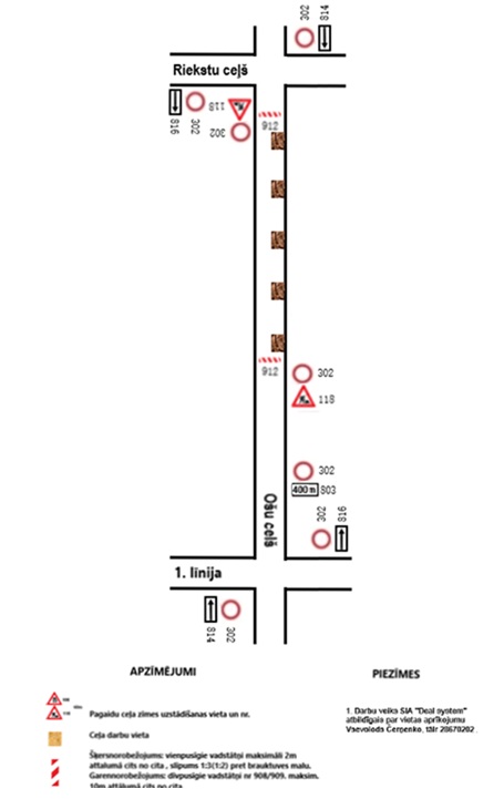 Darbu izpildītājs, atbildīgais par satiksmes organizāciju: SIA “Deal systems”, kontakttālrunis 27740225.