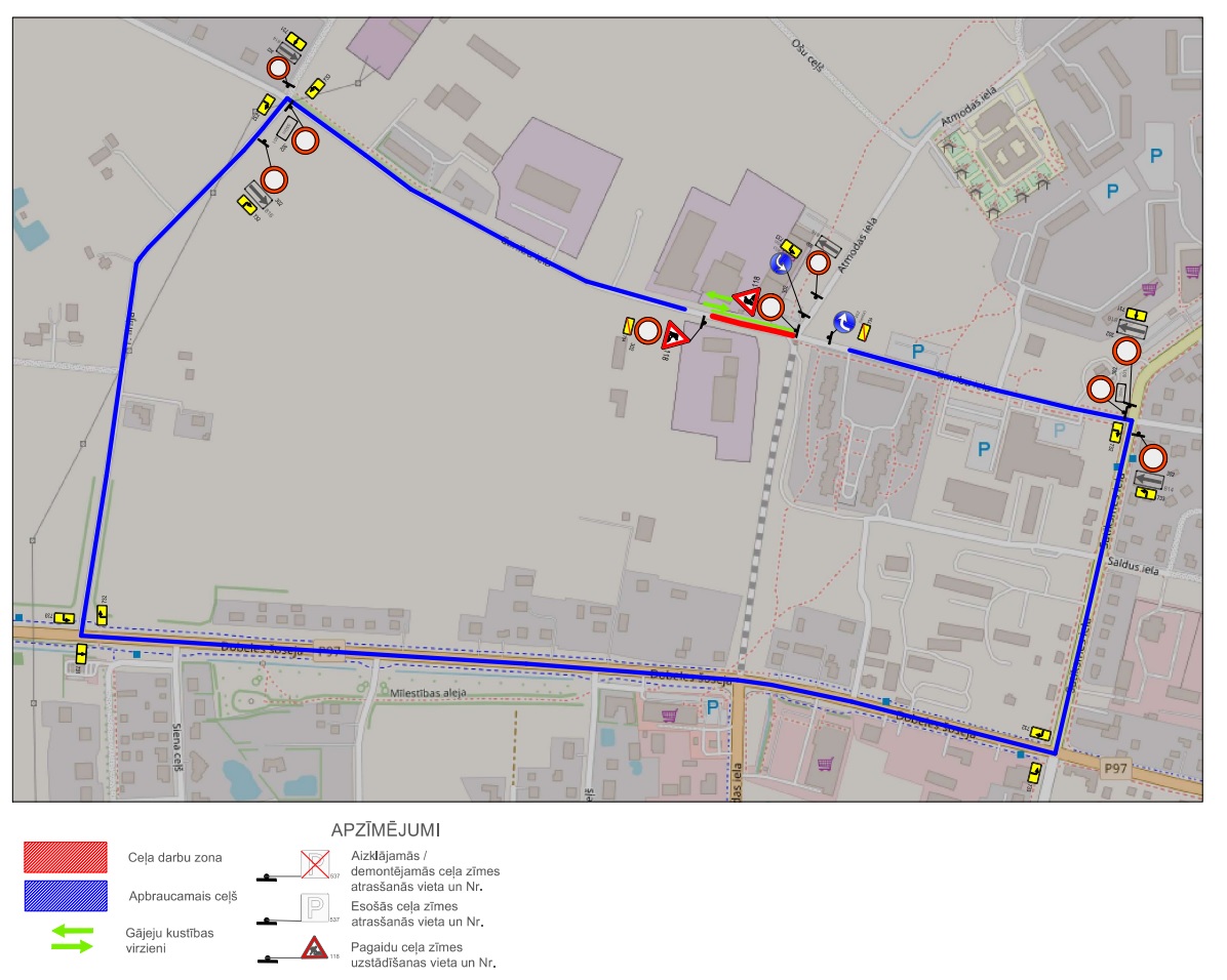 Darbu izpildītājs, atbildīgais par satiksmes organizāciju: SIA “Ceļu būvniecības sabiedrība ”IGATE””, kontakttālrunis 63027190.