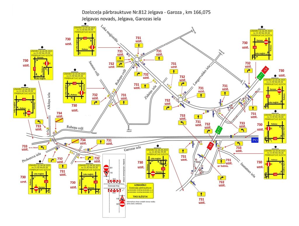 Slēgt satiksmi un ierobežot gājēju kustību Garozas ielā, posmā no Rubeņu ceļa līdz Prohorova ielai: