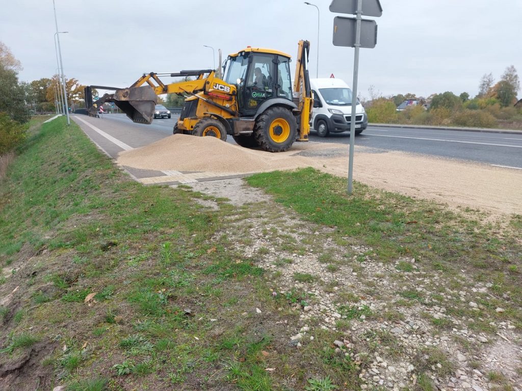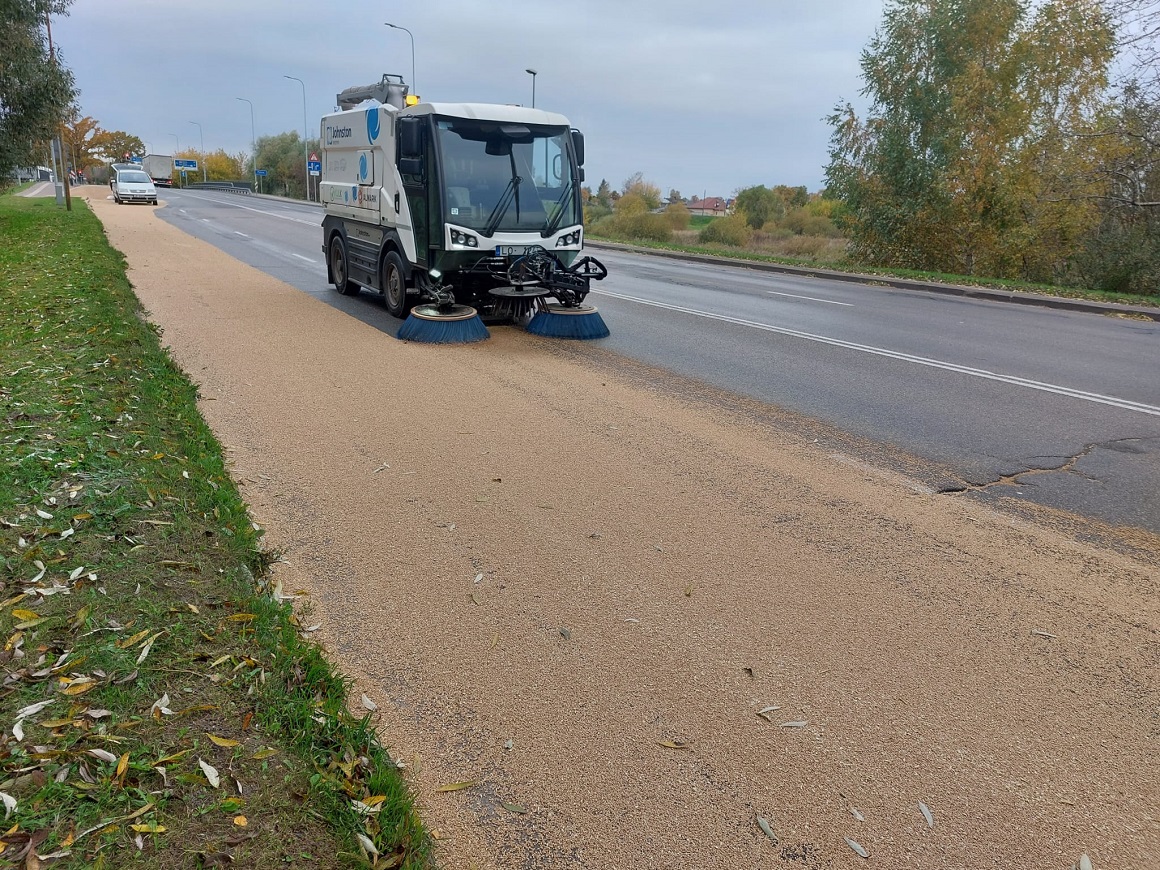 Lai atbrīvotu brauktuves no izbirušajiem graudiem, organizēta Miera ielas, Zemeņu ielas un Romas ielas asfaltēto brauktuvju attīrīšana. Graudu kaudze Miera ielā tiks nostumta zaļajā zonā un pārējie graudi tiek satīrīti mehanizēti ar speciālo transportu.