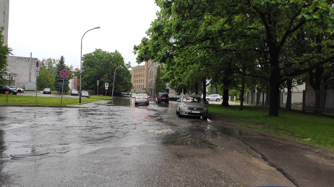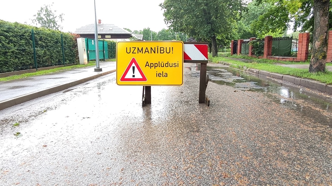 Stipro nokrišņu dēļ īslaicīgi slēgti applūdušie ielu posmi