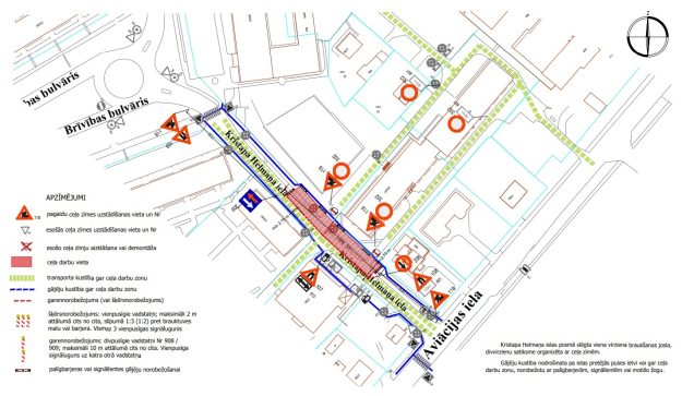 Līdz 31. oktobrim pagarināti satiksmes ierobežojumi Kristapa Helmaņa ielas posmā no Brīvības bulvāra līdz Aviācijas ielai.