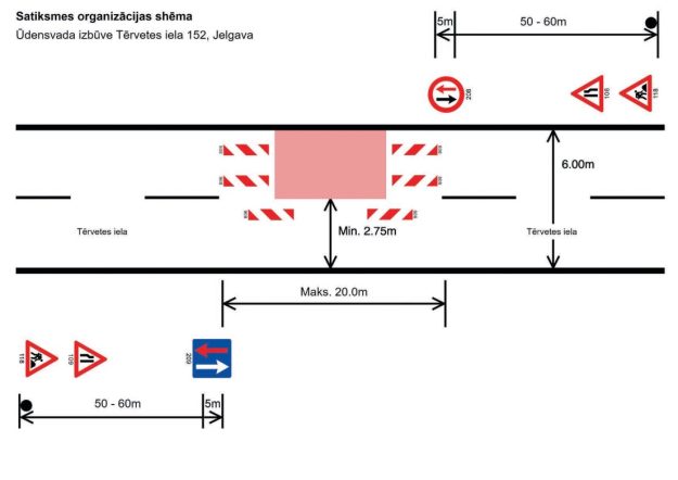 No otrdienas līdz ceturtdienai būs ierobežota satiksme Tērvetes ielas posmā
