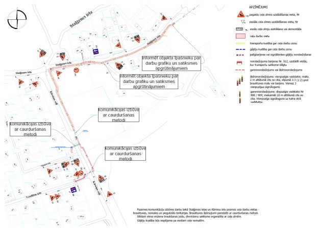 No 1. oktobra līdz 15. oktobrim ierobežota satiksme Staļģenes ielā, posmā no Līgotāju ielas līdz Nomales ielai, būvdarbu laikā – tranšejas rakšana, kabeļa guldīšana, ievērojot saskaņoto Satiksmes organizācijas shēmu.