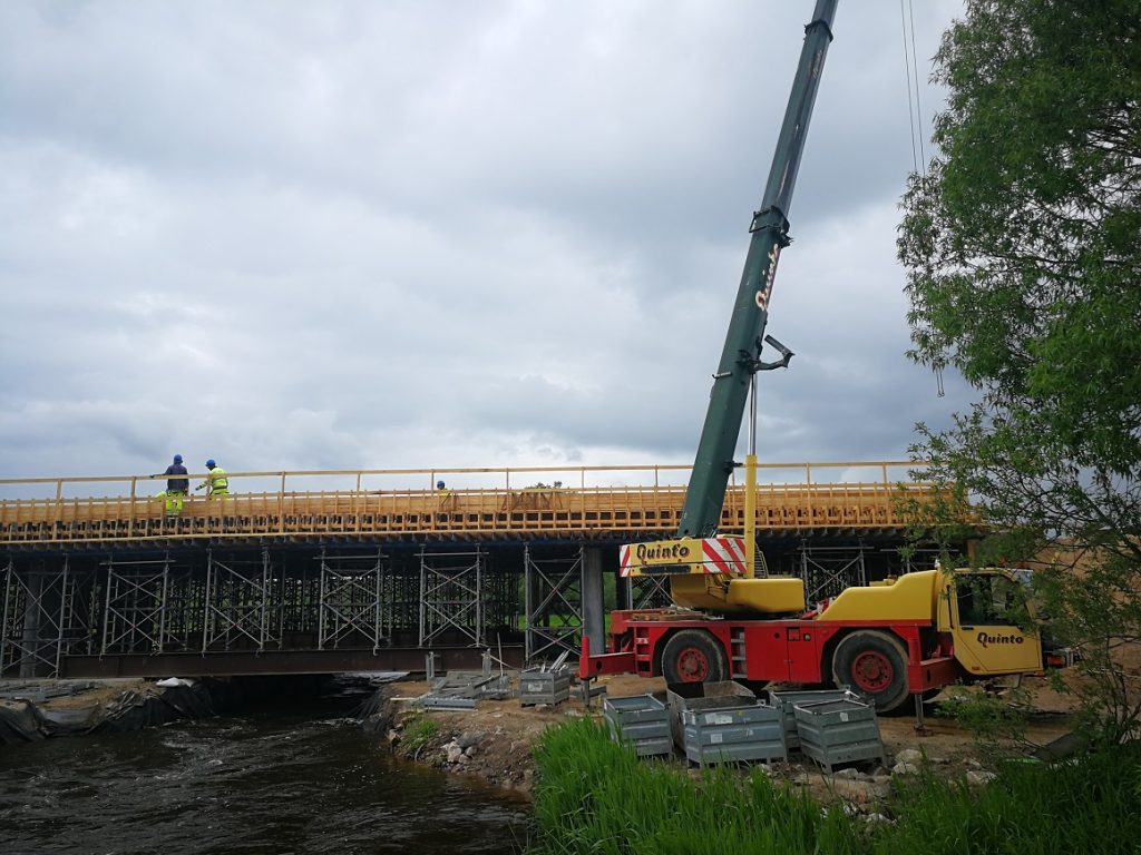 Tiltam pār Platones upi Bauskas ielā sākta laiduma konstrukciju būvniecība