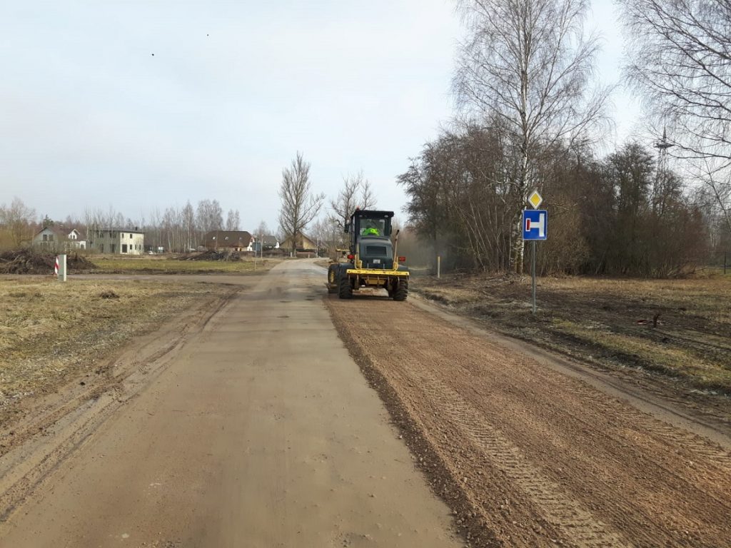 Stabilizējoties laikapstākļiem un apžūstot zemes klātnei, sākta atsevišķu grants seguma ielu brauktuvju greiderēšana. Greiderētas tiek grants seguma ielas, kur segums jau apžuvis. Šorīt sākta 1. līnijas, 2. līnijas, 3. līnijas, Meža ceļa, Šūmaņu ceļa greiderēšana. Bet, piemēram, Ganību ielas grants seguma posms vēl ir pārmitrināts un tā greiderēšana vēl nav iespējama. Darbi tiks turpināti Bērzu ceļa rajonā, izvērtējot konkrētu ielu seguma stāvokli un mitrumu.