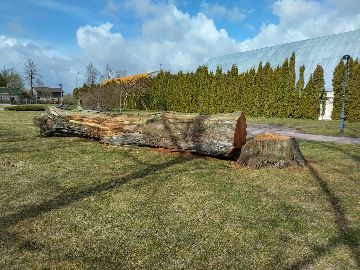 Tā kā kokam bija samazināta stabilitāte un pastāvēja bīstamība, ka koka lielais stumbrs trupes bojājumu dēļ var izgāzties, dižkoks kopumā tika uzskatīts pa bīstamu un apdraudošu apkārtnei un iedzīvotājiem. Nozāģētais stumbrs atstāts parka teritorijā un iestādes “Kultūra” speciālisti uzrunās māksliniekus par iespējamu koka skulptūras veidošanu.